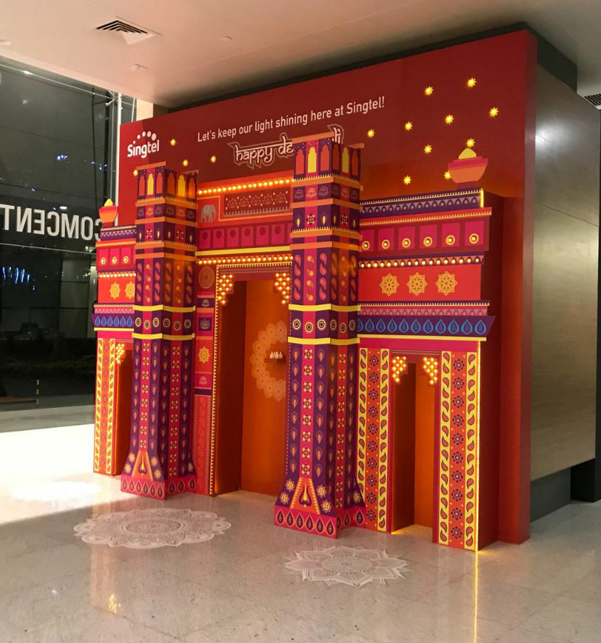 Singtel Deepavali mural design at Comcentre.